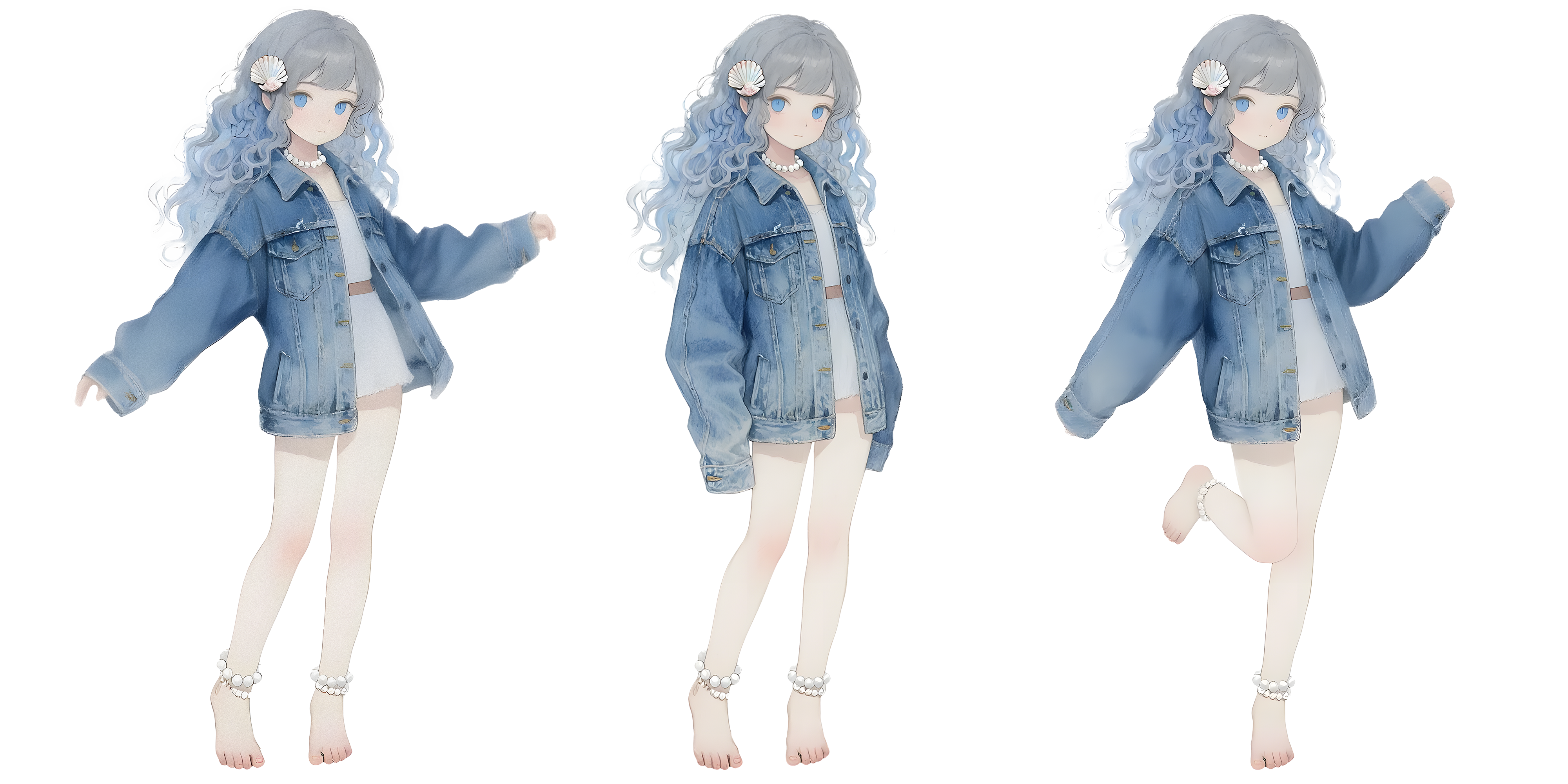 雾霭蓝发色 & 深空灰瞳色: 视觉上强化她与海洋/夜空的连接,发尾的雾霭蓝如深海暮色交融,深空灰瞳孔在光线下透出暴风雨前海面的蓝调。